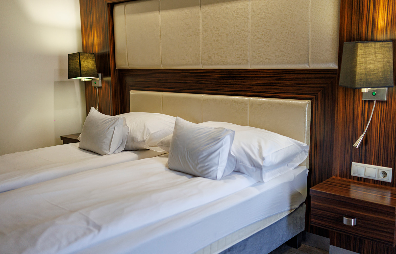 2 db, külön légtérben található ágy, melyek mérete 180×200 cm. Pótágyazásra nincs lehetőség a szobában